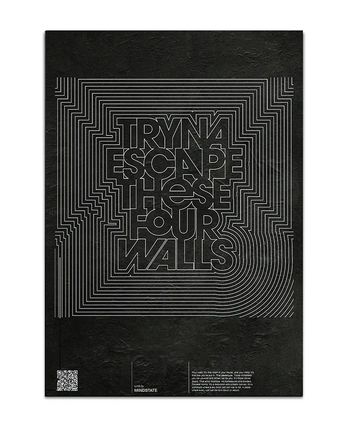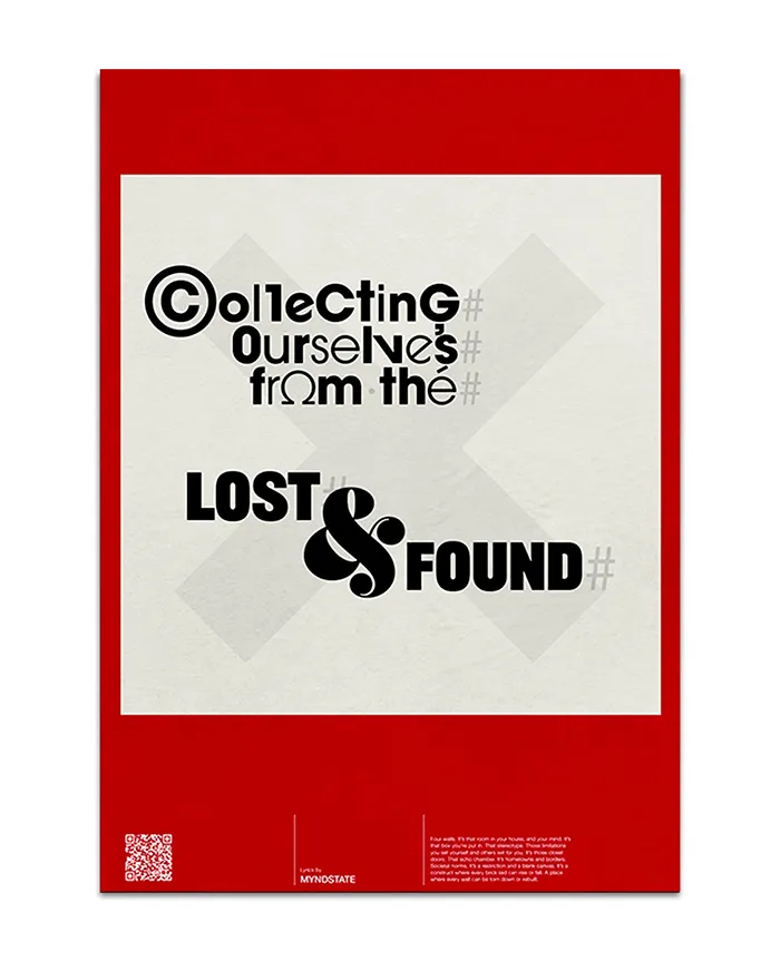 Inspired by Spin Studio’s minimalist design philosophy, we built the artwork around the idea of confinement and space. A simple square motif symbolised a room, becoming the central device to frame and present MYNDSTATE’s lyrics in visually engaging layouts.